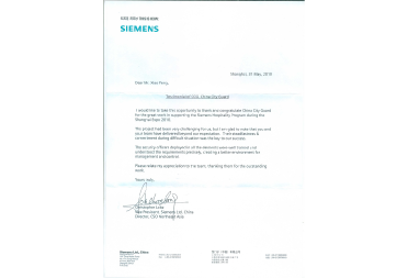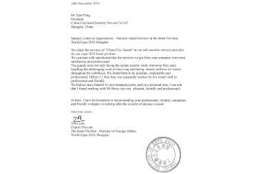 Letter of Appreciation from the 2010 Shanghai World Expo Committee